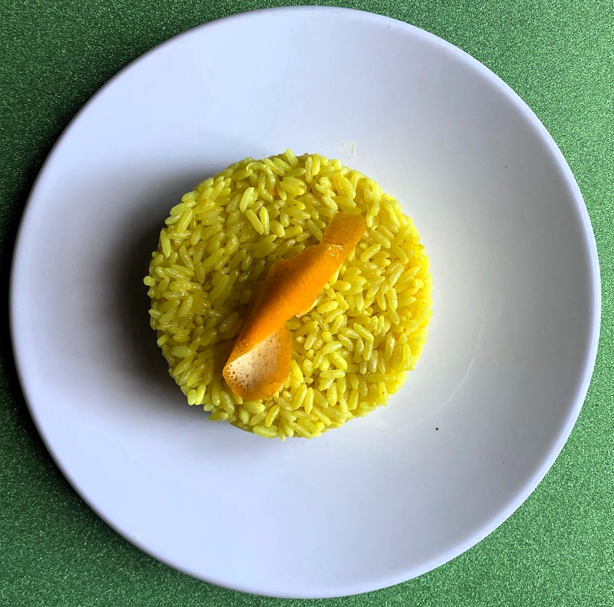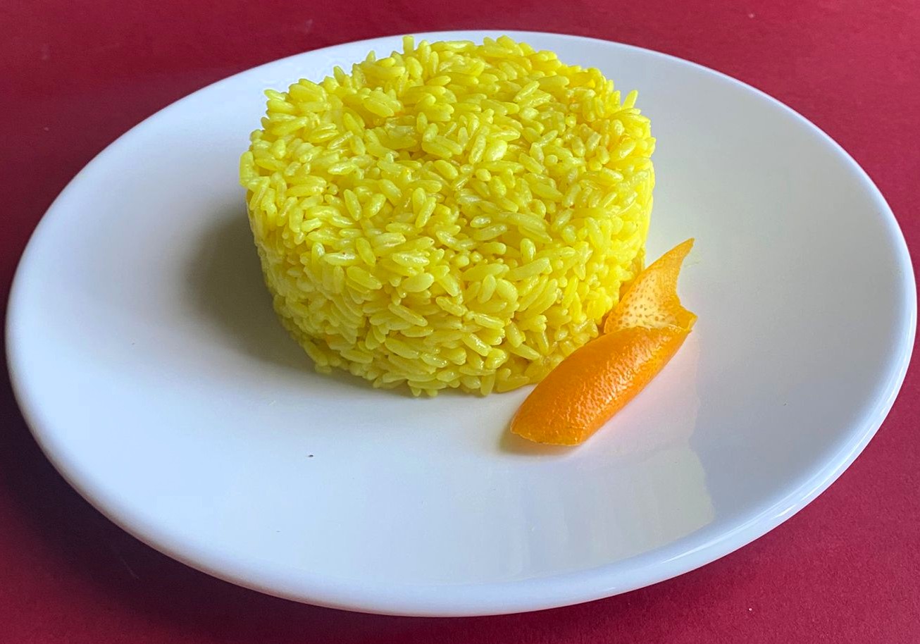 Arroz cítrico, ligeiramente adocicado da caramelização da laranja e perfeito para acompanhamento.