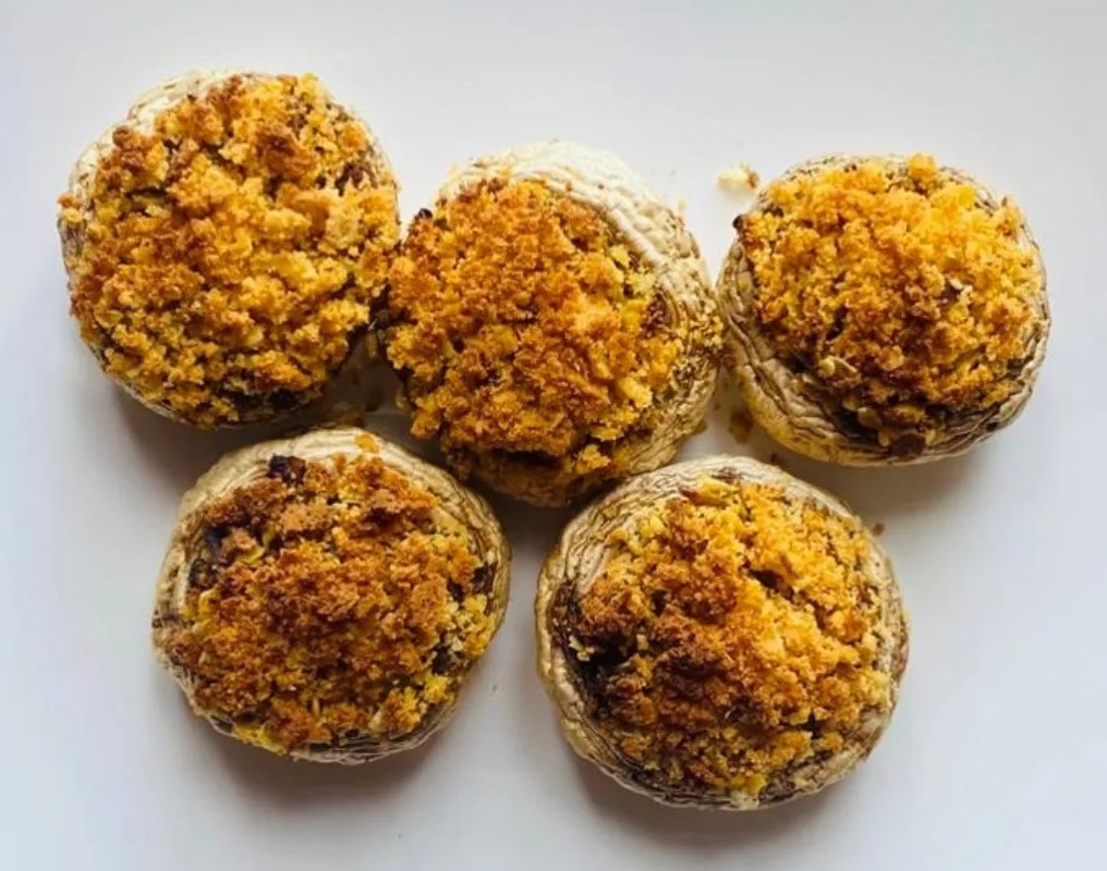 Cogumelos Paris recheados e crosta de broa 5 uni